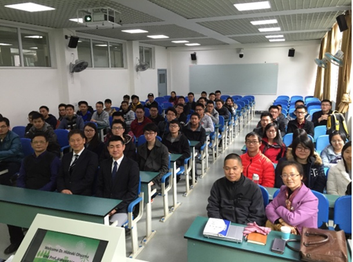 23日上午,当两位日本客人步入学术讲座会场,瞬时人声鼎沸。来自材料学院、新能源与低碳技术研究院和化工学院等单位的师生们给予了最热烈的掌声欢迎两位专家的到来。首先陈云贵教授代表川大师生对两位专家的来访表示了欢迎,并分别简要介绍了两位专家的工作经历、学术成果及业界贡献。